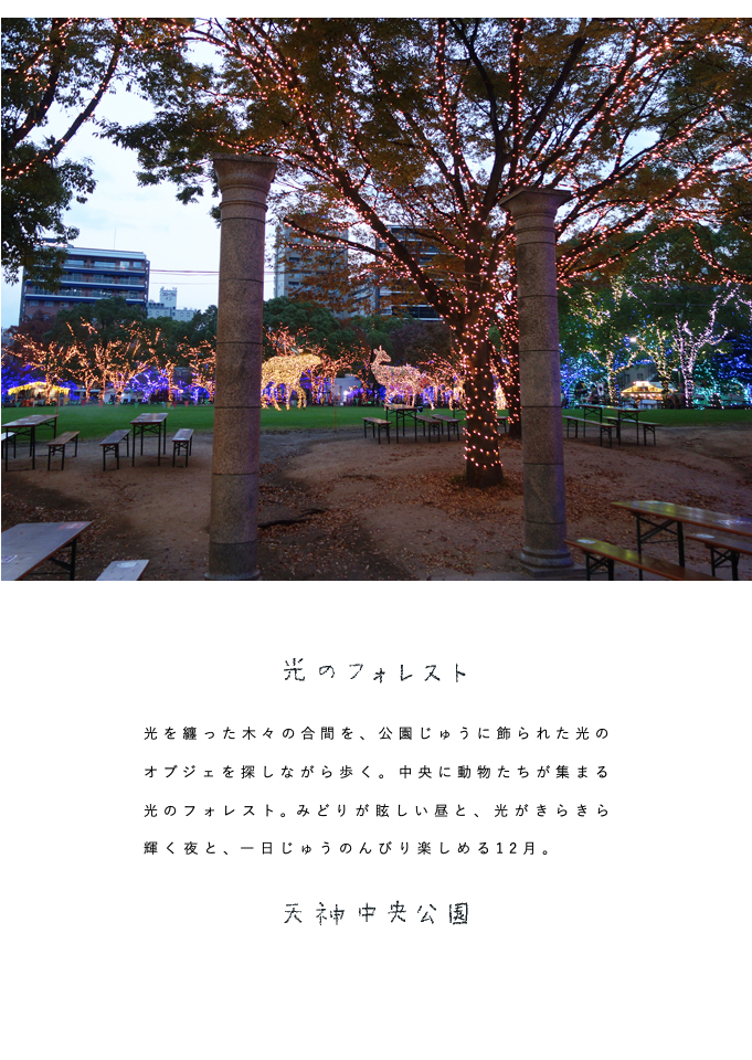 クリスマスアドベント2025 天神中央公園 光のフォレスト アクロス福岡 こびとの森 匠ギャラリー 八朔の馬 福岡市役所ふれあい広場 天神クリスマスマーケット 大丸パサージュ広場 Legacy 未来へ続くいのちの光 大丸広場 オーバカナル JR博多駅前広場 スーパーマリオツリー 8分新幹線