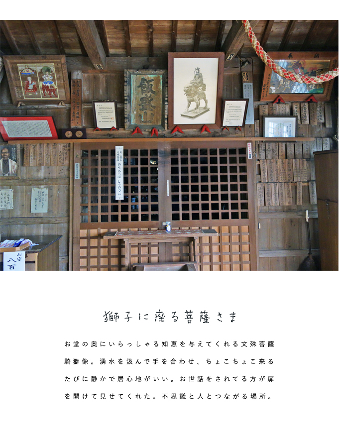かづのコーヒー 飯盛文殊堂 知恵の水 文珠菩薩騎獅像 南京玉すだれ